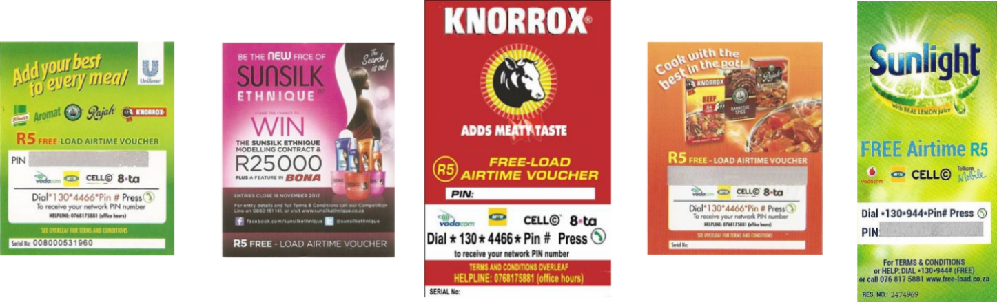 Free-Load vouchers can take the form of physically printed vouchers, virtual vouchers delivered to a cell phone or printed on a till slip or inside a pack to incentivise purchases.